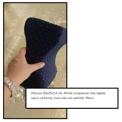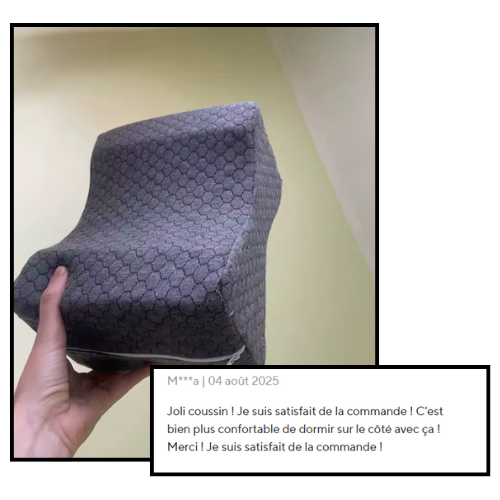 - À qui s’adresse ce coussin ? Aux dormeurs sur le côté, personnes souffrant de sciatique, lombalgies, douleurs de hanche/genou, syndrome fémoro-patellaire ou femmes enceintes cherchant un meilleur alignement.