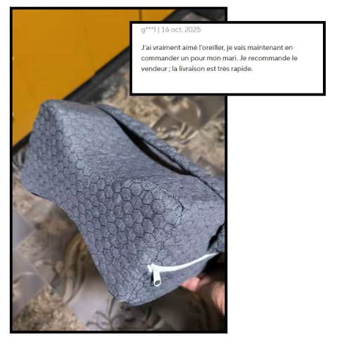 J'ai vraiment aimé l'oreiller, je vais maintenant en commander un pour mon mari. Je recommande le vendeur ; la livraison est très rapide.